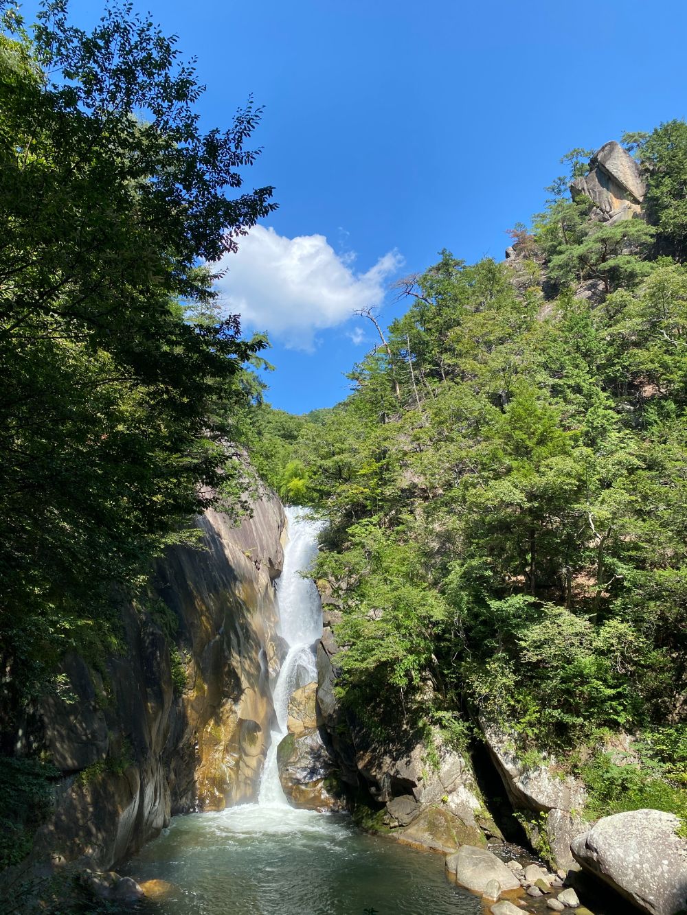 日本の滝百選にも選ばれている仙娥滝です。岩肌から流れ落ちる2段の滝が見事でした。