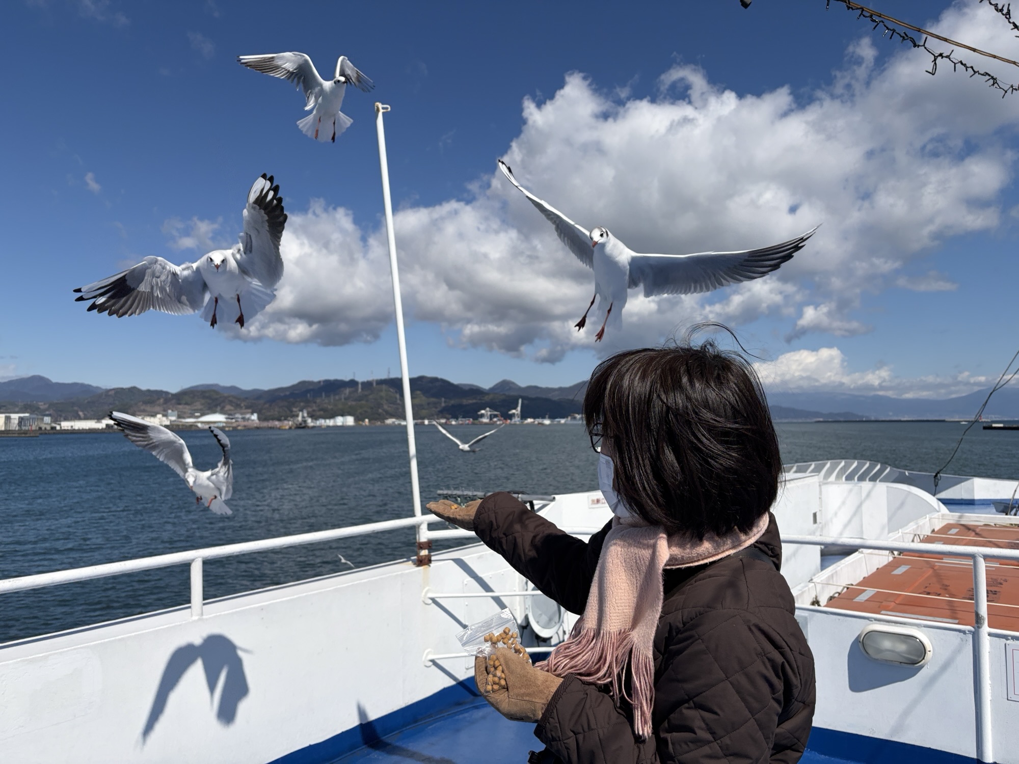 若女将のお目当ては「カモメの餌やり」(大笑。