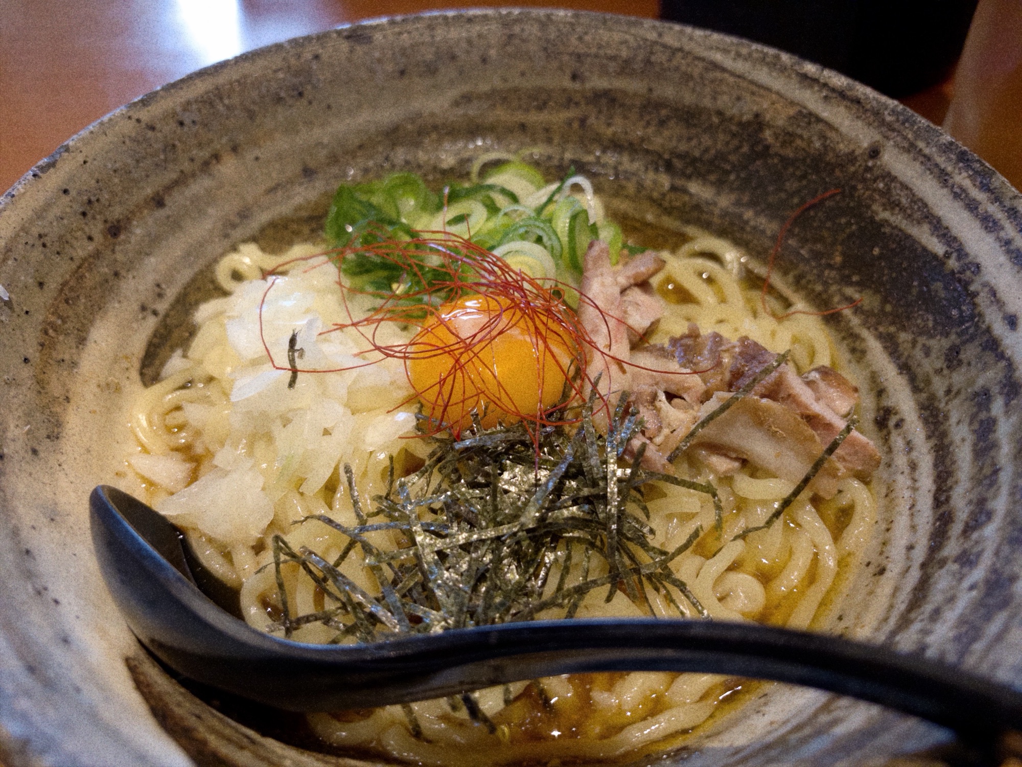 看板メニューの「まぜそば」を注文!油そばでもなく、しっかりとした煮干し系のつけ汁と